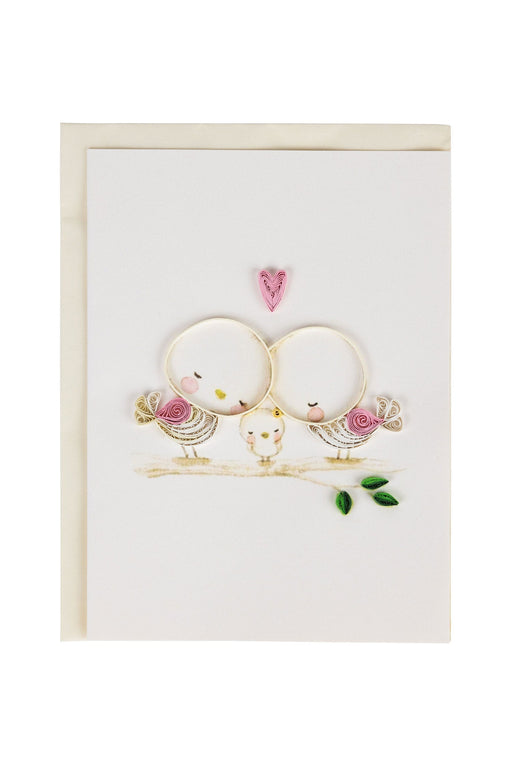 Handcrafted in BangladeshHandcrafted from two different kinds of tree-free paper, the Lovebirds Quilled Card is an eco-friendly greeting card that will make any mailbox sin...