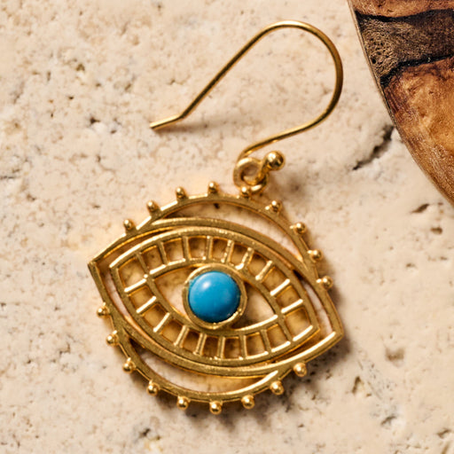Handcrafted in IndiaWard off negativity in style with these captivating earrings. Crafted from gold-colored brass and accented with a striking turquoise glass bead, ea...